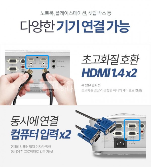 [단자] HDMI: 2개 / USB: 1개 / D-SUB / 헤드폰 / 컴포지트 / 오디오IN / S-비디오 /